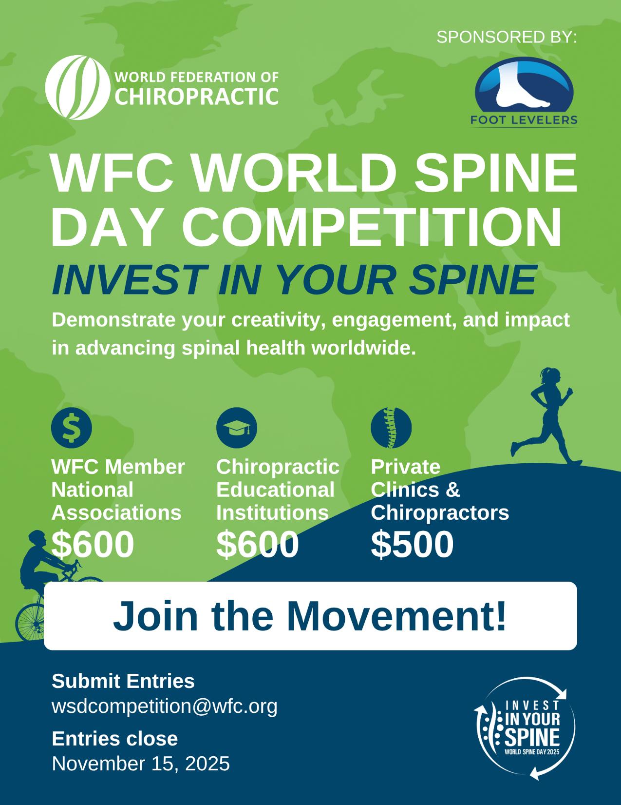 - World Spine Day 2025: Preparations are underway for Oct ober 16, including a refreshed brand identity and global competition announcement. Our competition, generously sponsored by Foot Levelers, will be featured across platforms