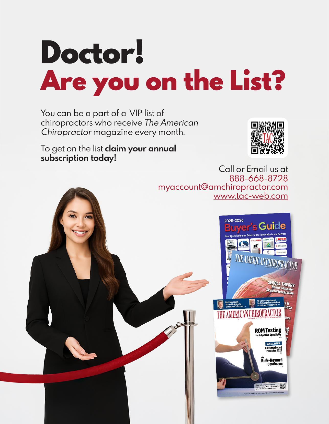As we continue to advance the global impact and recognition of chiropractic, I am reminded daily of the strength and unity within our profession It is truly an honor to serve as President of the World Federation of Chiropractic and to witness the dedication of chiropractors around the world who are committed to improving the health and well-being of their communities.