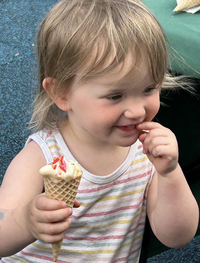We do our journals and sometimes we play word games. We try to come up with words that Ms. Anne is thinking of. We do art. We drawed on coffee filters and then we sprayed them with water. The colors changed and went into the other colors. After it was dry Ms. Diana made butterflies. In music we do games; it’s so fun. We play the ukulele. Favorite K work: Journals! I do a lot of work on them. You write sentences and other things. We write pictures. I write about things that I like to do. I got a huge tent; I wrote about it in my journal. Sometimes I draw planets and sometimes I do the World Map. Most challenging work: Sewing work. You put the string up and down through the holes. I did the Stamp Game. Ms. Anne gave me a lesson. I really like the Magnet work. You copy the picture. I like the library. It has so many books that I like. I like the Pink Tower and the Brown Stair. I build stuff with them. Favorite FT: Chinatown! It was fun. We went on a trolley; it’s like a bus-train. It has wheels and it goes underground. I had a smoothie. I saw them make long noodles. Me and my mom went to a store that had a lot of foods. After the last day of school I’ll be a first grader. I’ll remember Ms. Cara and Ms. Anne. Ms. Cara is having a baby.