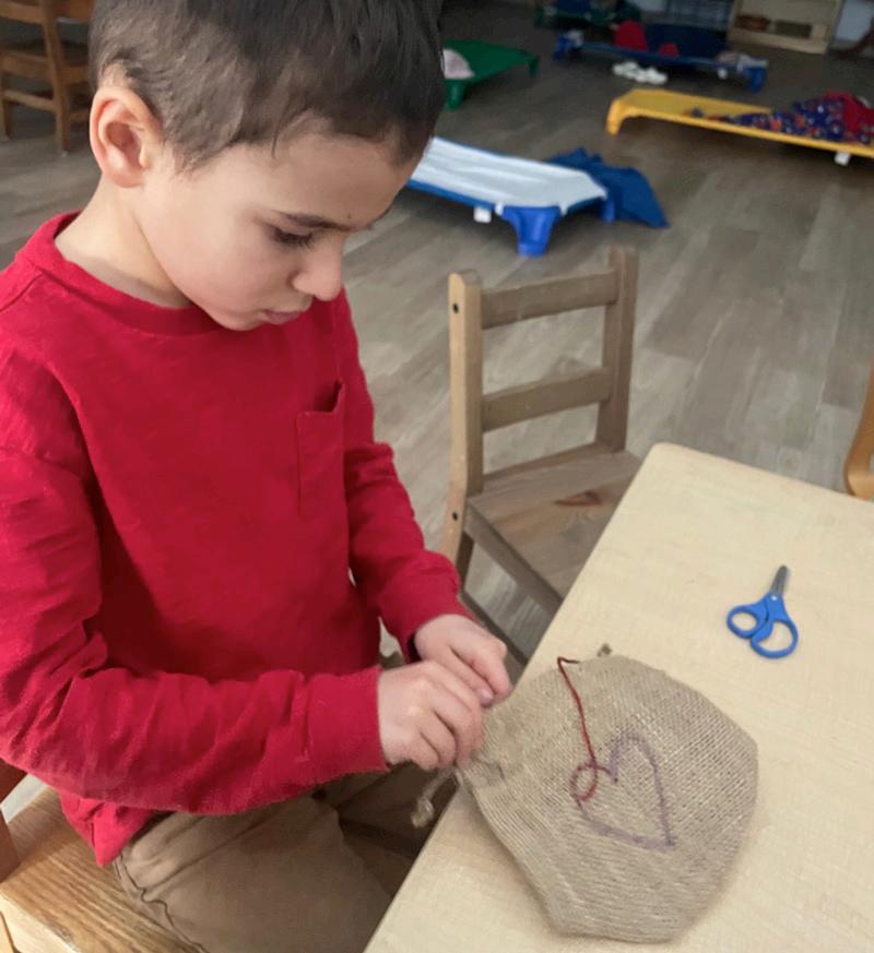I’m going to stay at GT next year. There’s Bead work and a Number Roll. I’m doing it right now. I’m trying to get up to 1000. I’m on the 30s now. I like the Metal Insets. You trace the shape and you color it. There’s a flower and a house. Favorite work: Pink Tower. There’s a book with pictures of what you can do. Sometimes you mix it with the Brown Stair. During K time we do baking, we go to music and art. Sometimes we do art in our classroom. We do lots of stuff! Baking is my favorite. Greatest accomplishment: the 100 Board. I felt good and I showed it to my brother’s class. In art we learn about different artists then we do their art. Sometimes we have free time and we choose a work from the shelf. There are easels where you can paint whatever you want. Favorite FT: The art museum because it had birds on a tree. We saw a statue of a woman with bags. We saw a lot of paintings. Favorite LATW: The first one had a fruit I liked. Before the end of the year I want to finish the Number Roll. It’s going to take a long time. Next year I’ll be in 1st grade. The work will be harder. I’ll be with Samantha and Aaron and we’ll see Ishani, Veera, Sophie, Naomi, and Charlie. I’ll remember the Bead work. I hope I can do more Bead work. I’m going to remember my teachers, Merin, and Shayla.
