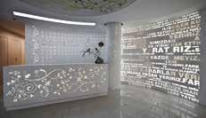 concerns; metal lacks warmth. Acrylic Solid Surface fills these gaps with remarkable ease. Lightweight yet durable, it can be thermoformed into curves or sharp geometries while maintaining consistent shades and finishes. Its non-porous nature resists staining, discolouration, and microbial growth, ensuring façades remain beautiful and functional for decades.