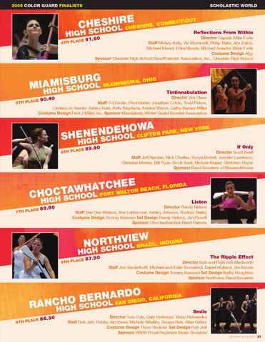 Director Jim Olson Staff: Ed Devlin, Fred Marier, Jonathan Colvin, Todd Peters, Lindsey Jo Vawter, Ashley Kate, Kelly Stephens, Kristen Wrenn, Cathy Barnes-Miller Costume Design Fred J Miller, Inc. Sponsor Miamisburg Winter Guard Booster Association