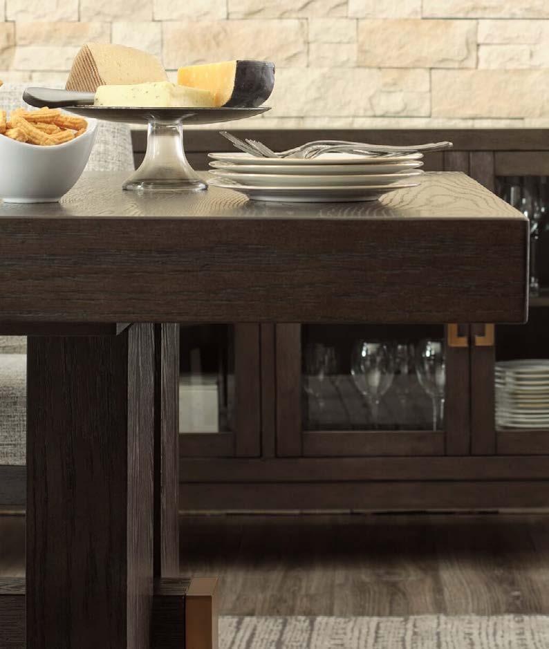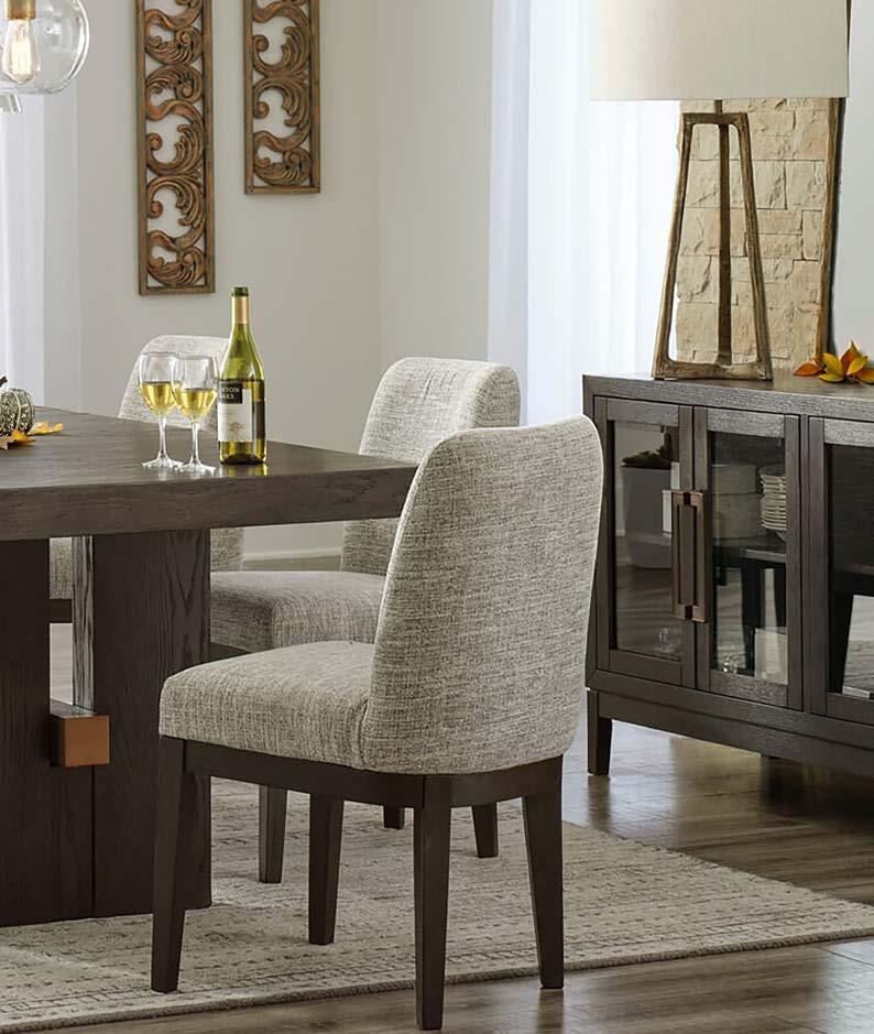 A timeless look built to last—our Caldwell Collection combines sleek lines and a dark brown oak-tone finish that’s oh-so-stylish and pleasing to the eye. The modern, clean-lined design features a double pedestal base and thick edge tabletop, showcasing quality craftsmanship and careful attention to detail. Pair all that with a stunning chair upholstered in a neutral fabric, you’ve got a beautiful space ready to make every gathering better.