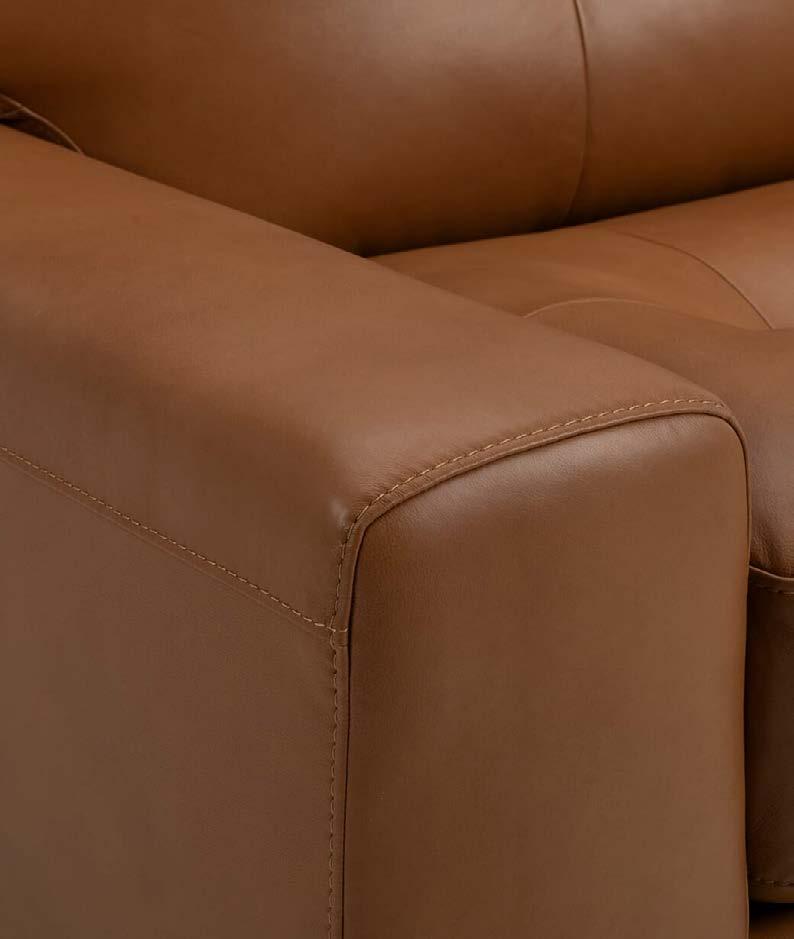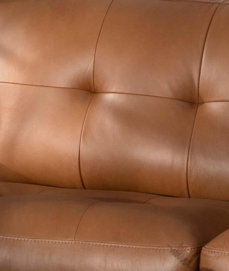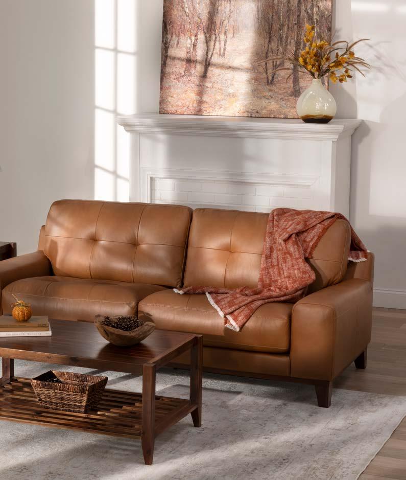Sink into the luxurious leather of our Jamie Collection. Complemented by stylish, exposed wooden legs and a button-tufted back to add the perfect touch of sophistication, making it an ideal centerpiece for any living area.