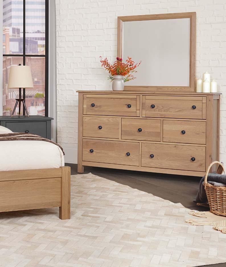 Made solid in the USA, this collection offers your choice of 5 finishes and 3 bed styles, all completely dream-worthy. Choose from clear oak, graphite, and indigo finishes and a farmhouse, architectural or upholstered bed.