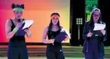 Whilst the judges discussed the results, families left Arts Centre. This enabled the pupils to populate the to hear the results. But first, the staff dance! Everyone on their feet clapping and singing along to Don’t Stop by Queen. You might have thought that the excitement couldn’t get any higher, but the Arts Centre erupted when Mrs Haslam, Ms Baylis and Mr Bennett took to With blow-up guitars in hand, they executed the guitar with style.