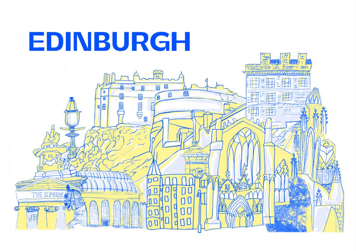 As part of the Empowered Ente Café space for peer-support se providing hot food and drinks Pod Press, our community riso our regular programme and fr for sale. SmARTcraft produce participants created postcards town. These designs are for Edinburgh Printmakers, Sc Collective & CCA Glasgow.