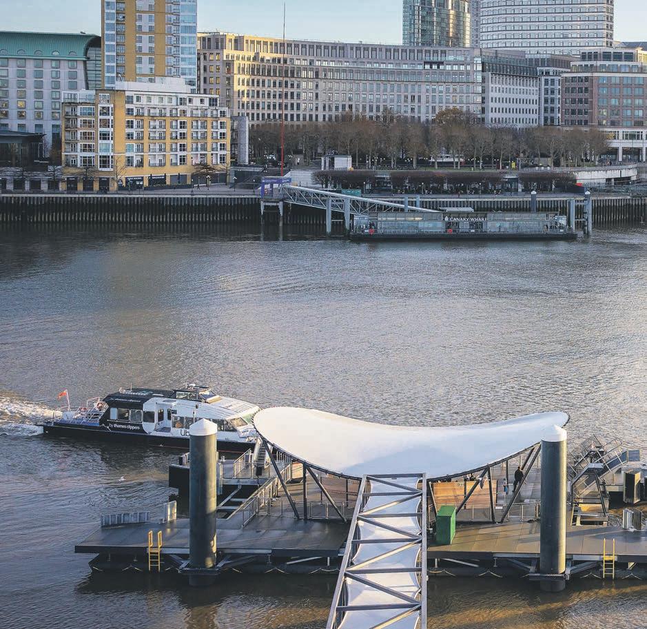 She’s electric: The rst zero emissions cross river ferry in the UK is now operating between Canary Wharf and Rotherhithe with capacity for many more bikes and passengers