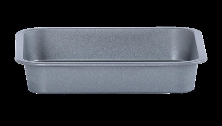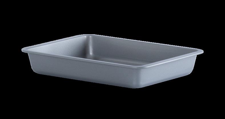 The range includes deep dish tins, round tins, trays, square tin, oval dish, and mini oven tray. All crafted with high-performance, non-stick coating for easy cleaning. Safe up to 230 degrees with a durable, lightweight design for rapid heat transfer.