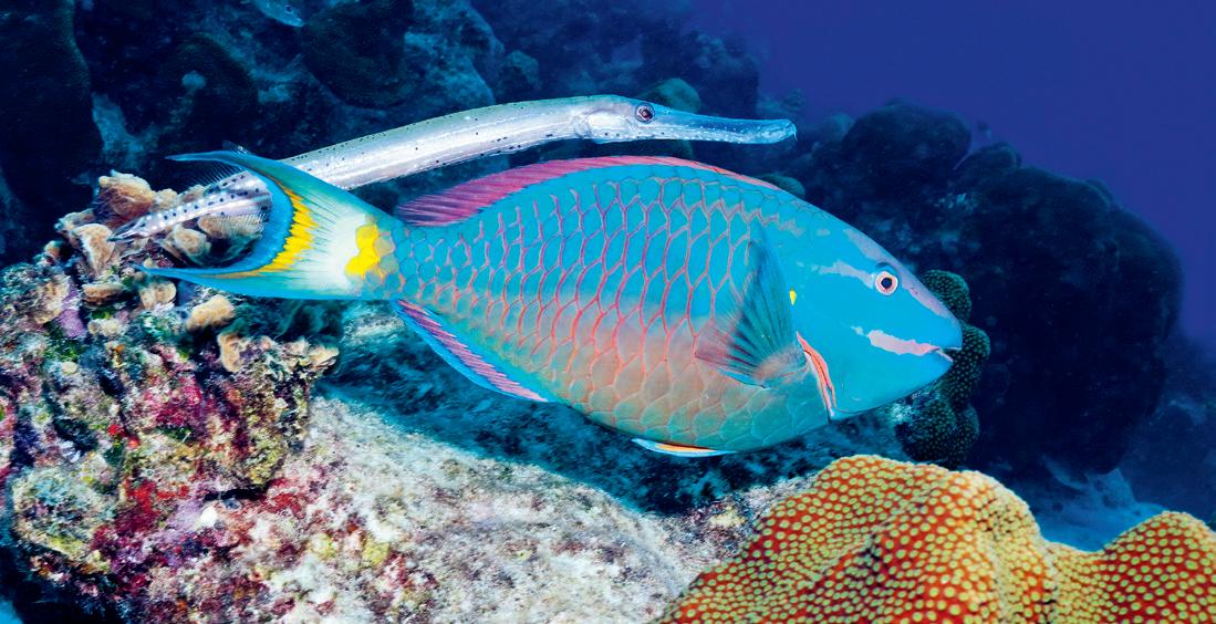 The trumpetfish is a predator that lives near coral reefs. People diving near the reefs had noticed that trumpetfish often swim very close to large, non-predatory fish that they don’t eat, such as parrotfish. But why would trumpetfish want to hang out alongside parrotfish?