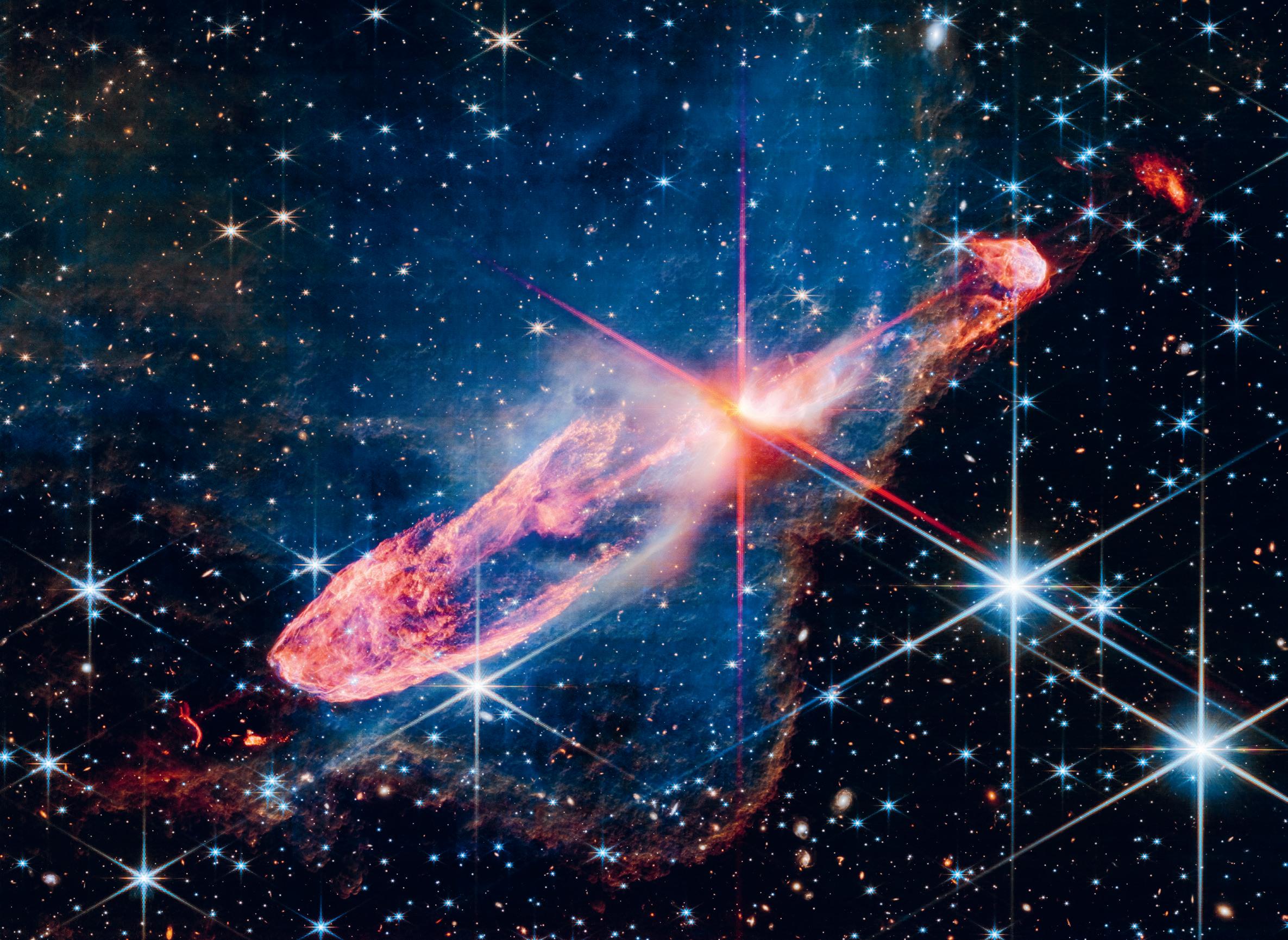 In July the European Space Agency released this stunning image of stars forming 1,470 light years from Earth. But below the stars and the disc of material that helps the stars to grow, there was a mystery of the cosmos – in the form of a question mark! Scientists aren’t yet sure what the question mark is, but they have some ideas. The red colour means that it’s quite far away. And it is probably a distant galaxy, or even two galaxies colliding!