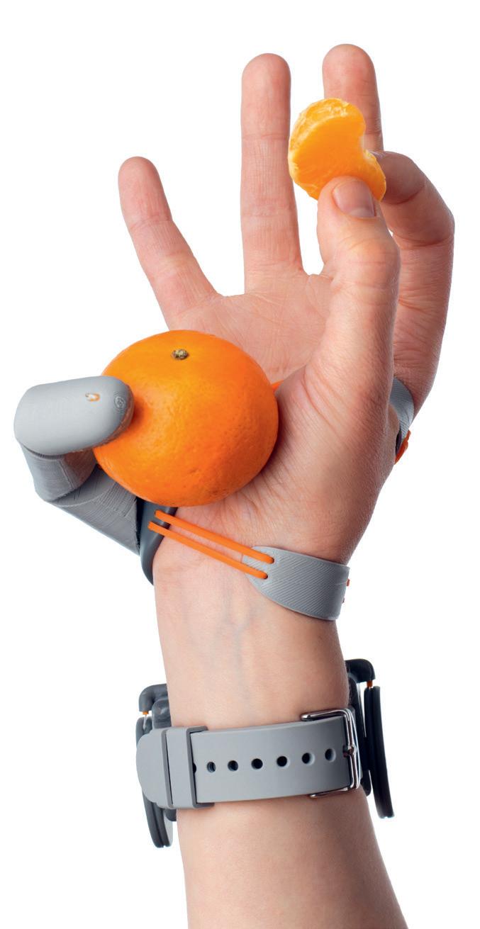 use of two hands. People with typical hands might also find the Third Thumb useful for everyday tasks such as picking up and holding objects. For example, by using the Third Thumb, a person can hold their cup and stir their hot chocolate with the same hand! Studies show that people of all ages have been able to operate the thumb successfully, so it could become a common tool of the future.