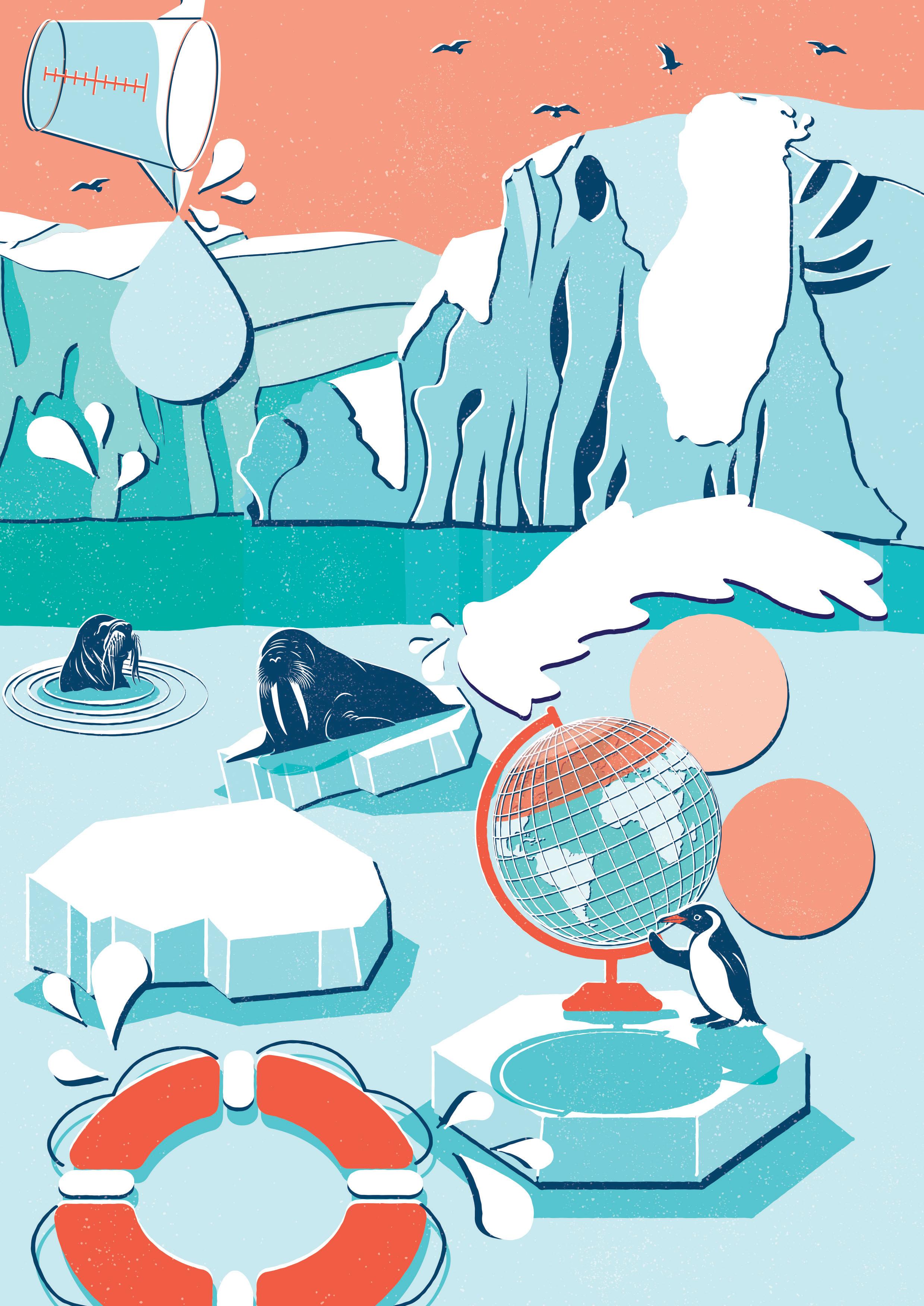 Slide over to page 49 to discover cool facts about glaciers, including how many there are in the world and how much of all the water is found in them.