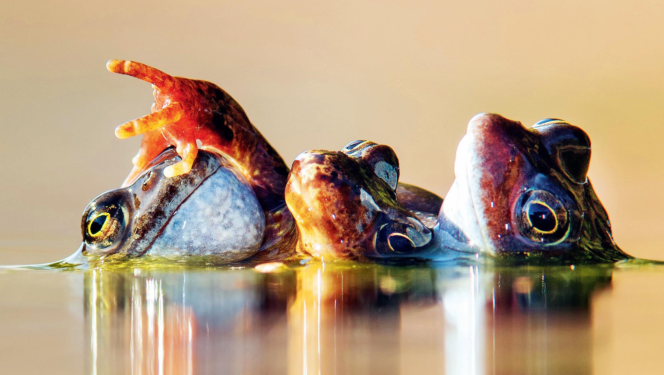 Ian Mason captured these three common frogs having a moment together in Perthshire, Scotland. Common frogs are the only type of frog found in the wild in Scotland. The females, which can grow up to 13 centimetres in length, are a bit larger than the males, at 9 centimetres.
