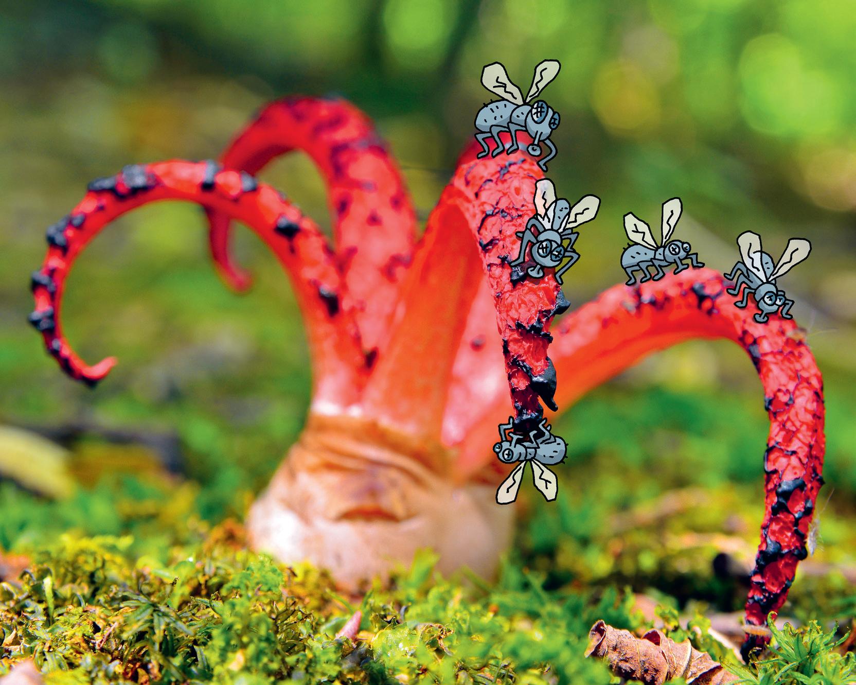 A plant called the octopus stinkhorn emits a stench that attracts flies, which then feast on the slime that covers the plant!