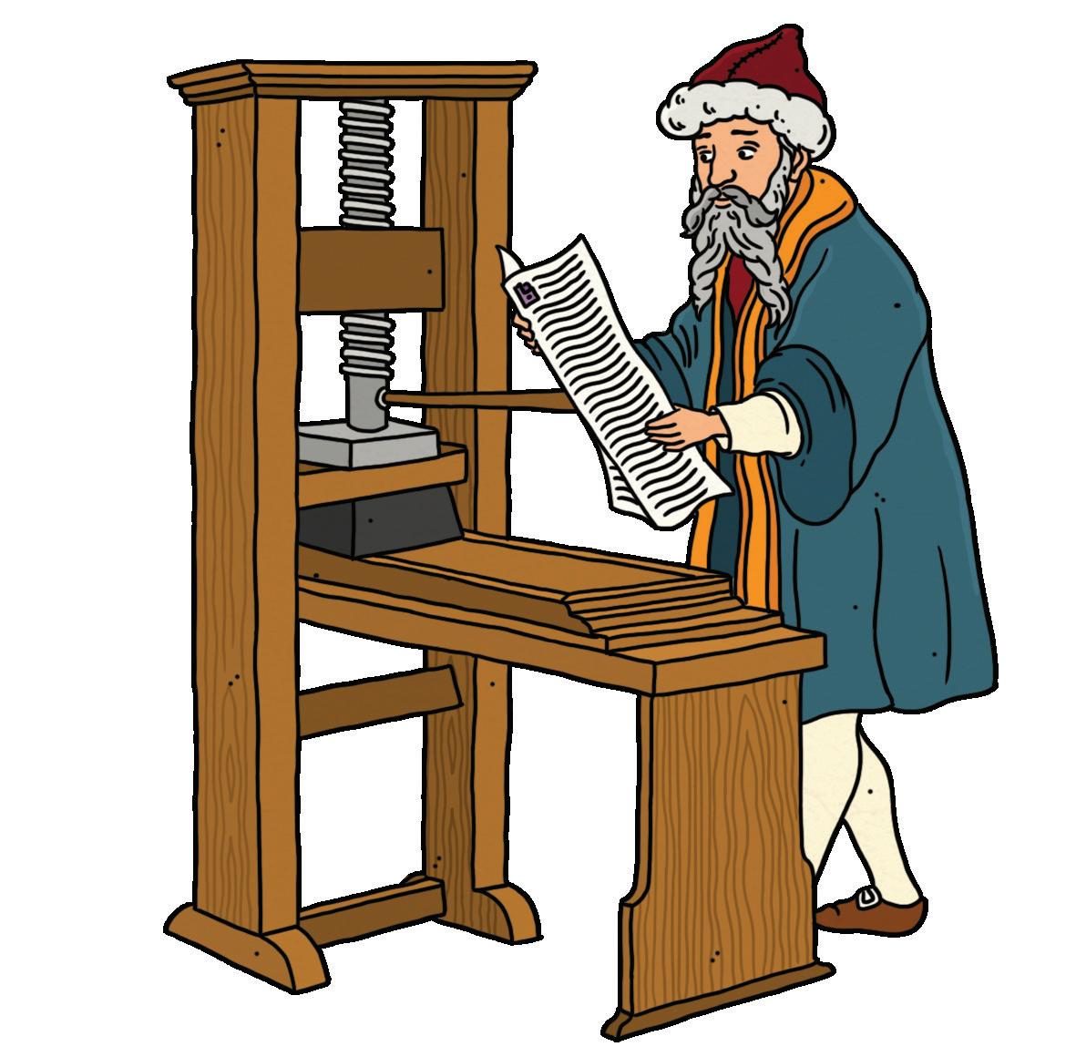 A German goldsmith, Johannes Gutenberg, below, built the first mechanical printing press in