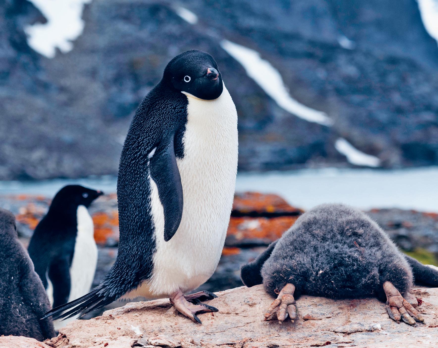 This pair of Adelie penguins were snapped on an island near Antarctica. The penguin on the right looks as if it has fallen over. The penguin on the left’s expression makes it seem as if it can’t believe what’s just happened!