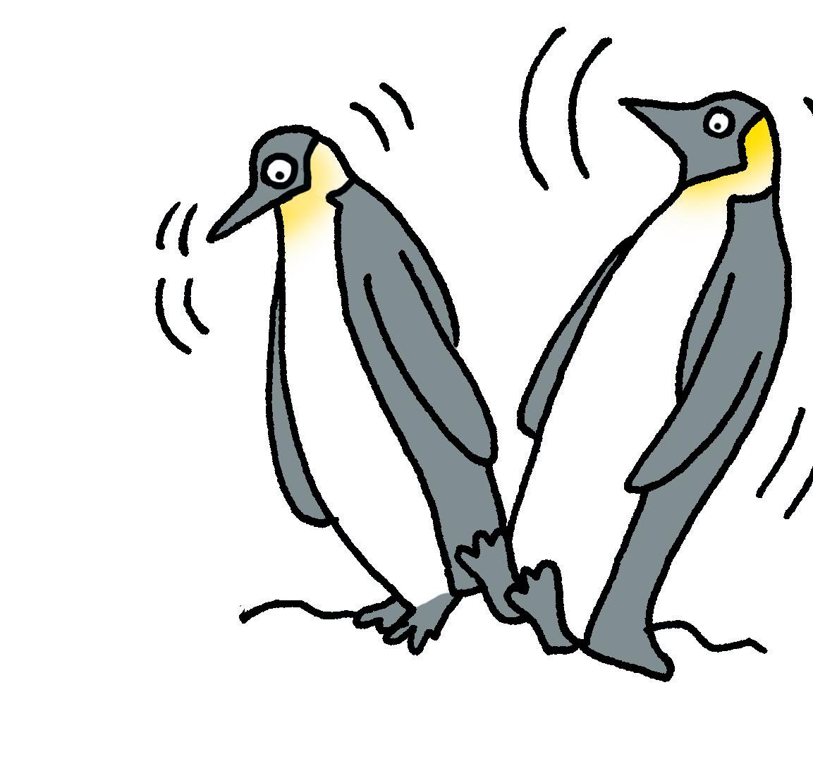 Antarctic emperor penguins rock back and forth on their heels to keep their feet from
