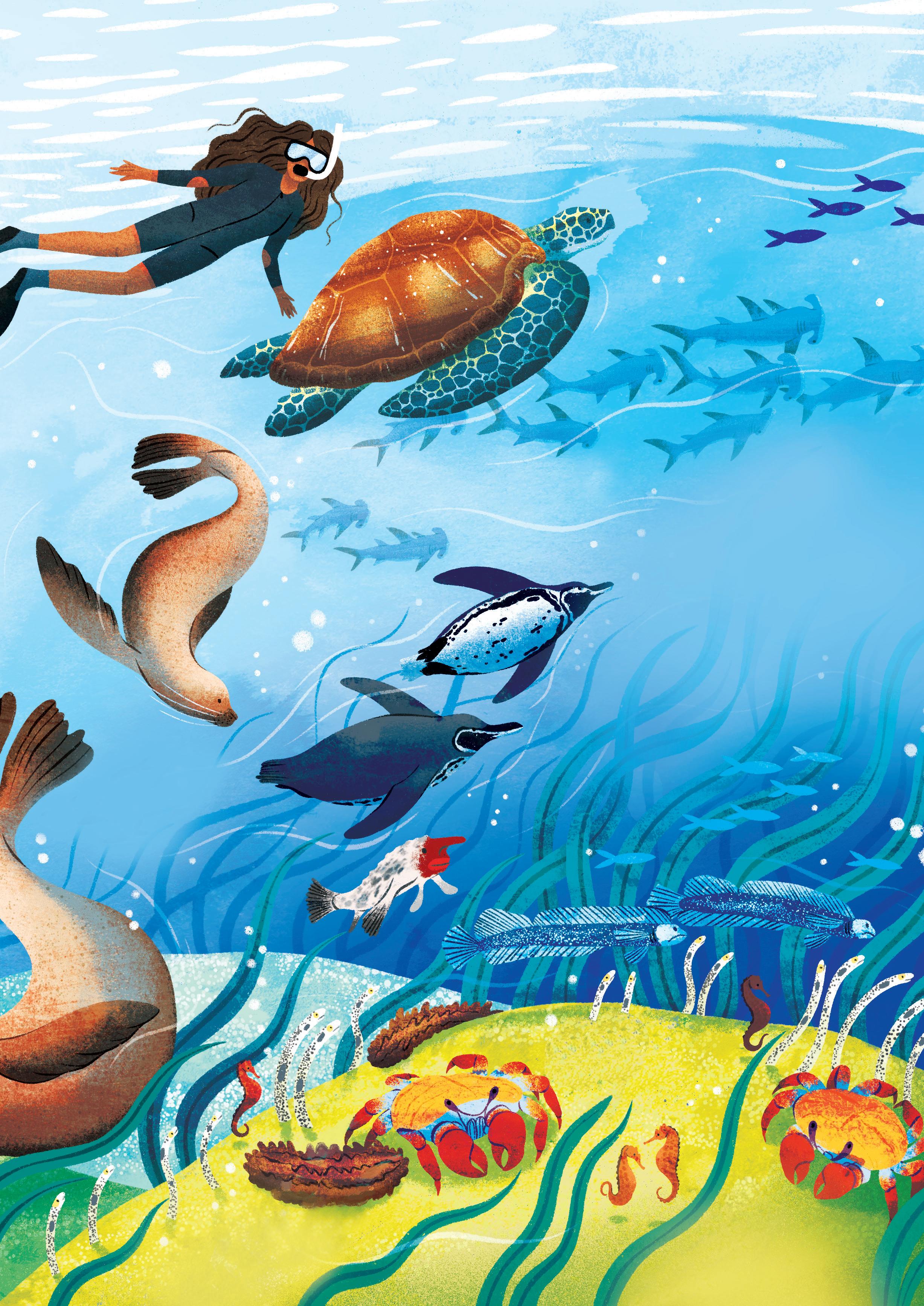 Meet some of the amazing and unique wildlife that lives on the Galápagos Islands on page 60