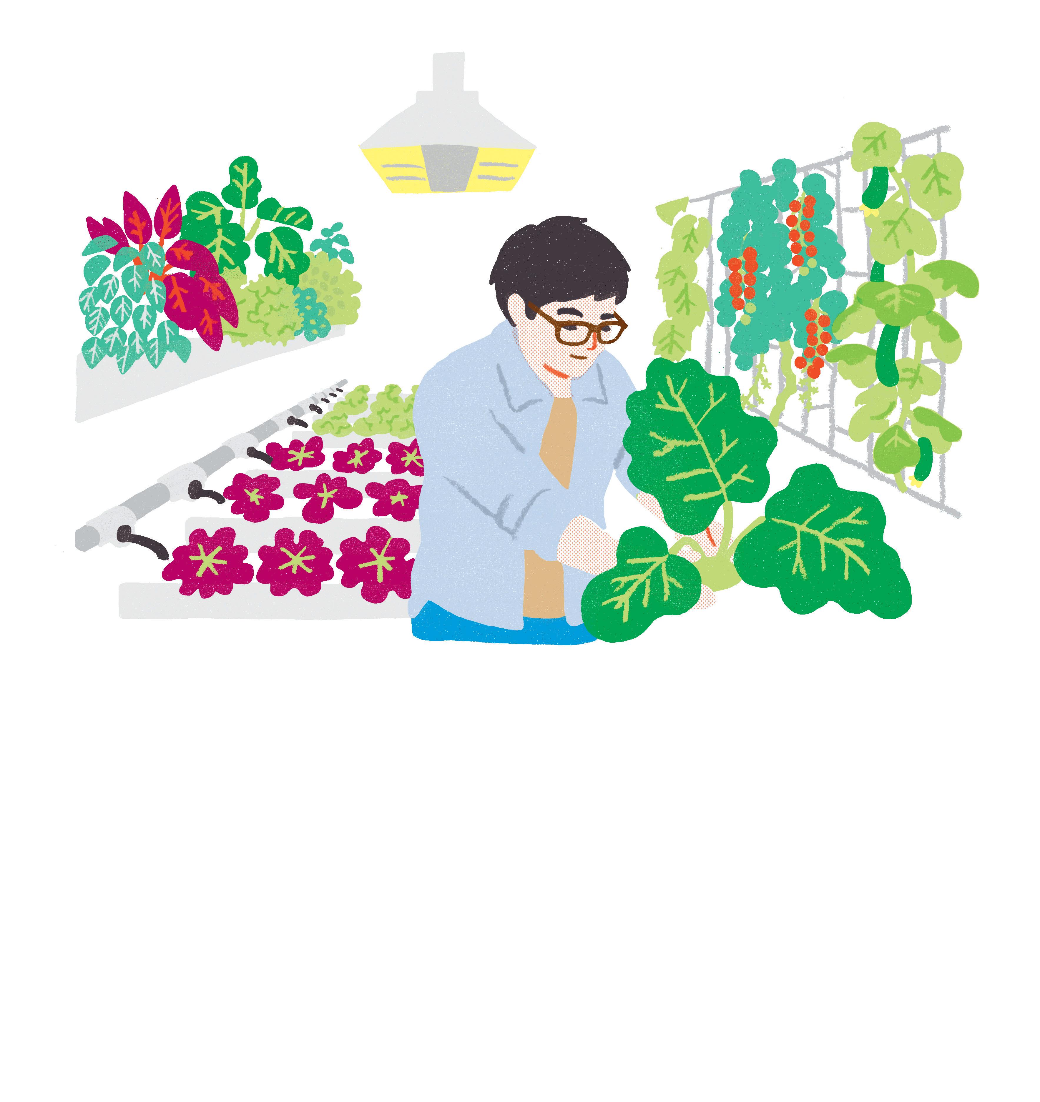 Otousan’s plants grow under special lights. He uses a system of water and nutrients called hydroponics to feed them. Because there are no seasons inside, the plants are always growing. Most things at Pole smell like people and machines, so it's nice to go in and smell the