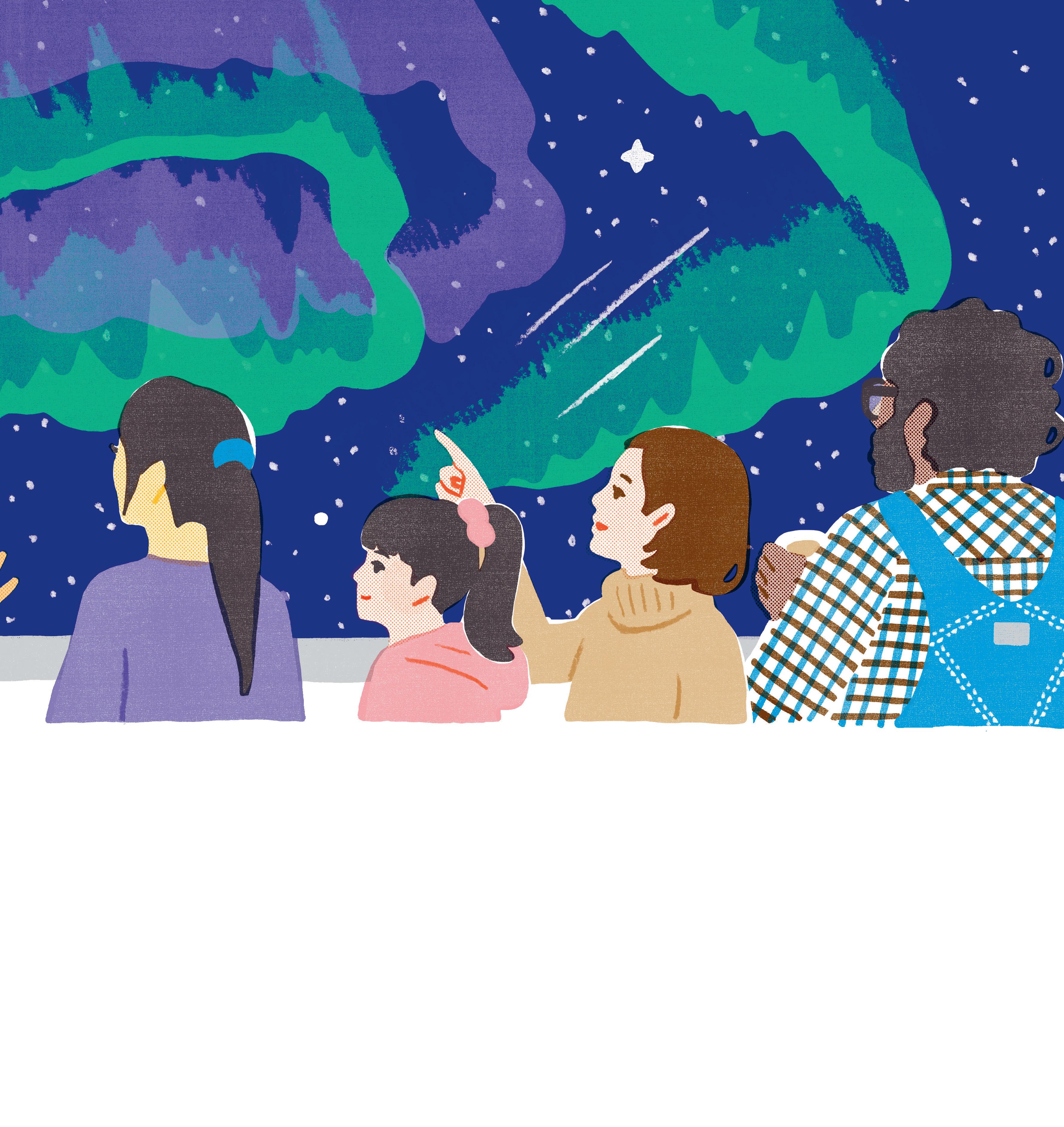 My okaasan is an astrophysicist – a scientist who studies how the universe works. There is almost no moisture in the air at Pole and in fuyu the darkness is total. So my okaasan can do research here that can’t be done anywhere else in the world. She listens to the sounds of the Big Bang. That’s the explosion that created the universe. We can still pick up leftover signals from it now. They sound like 'shhhhhhhhh'. It's very cool.