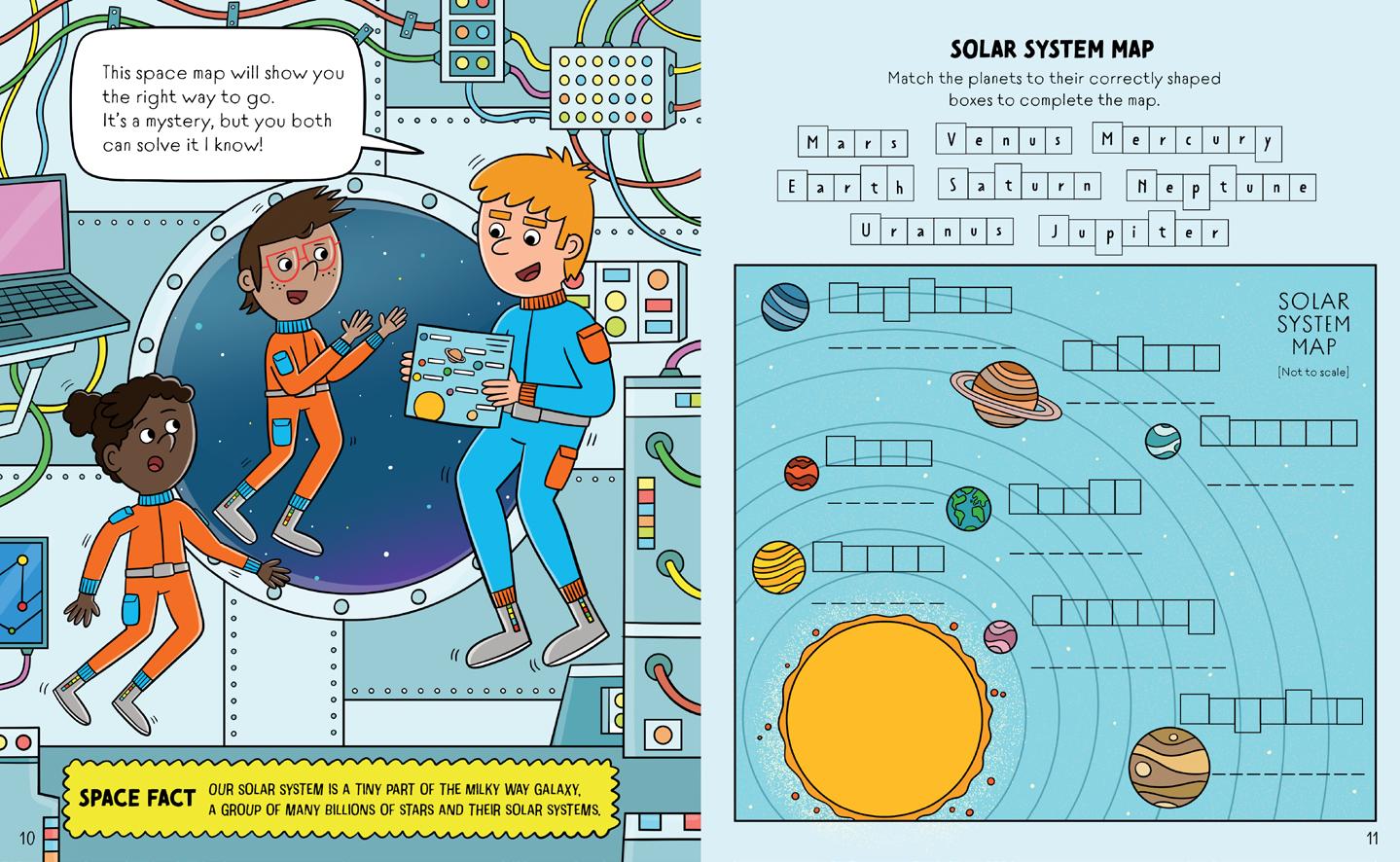 ‘Collect rock samples and learn about the planets. Watch out for the amazing countdown pages at the start!’