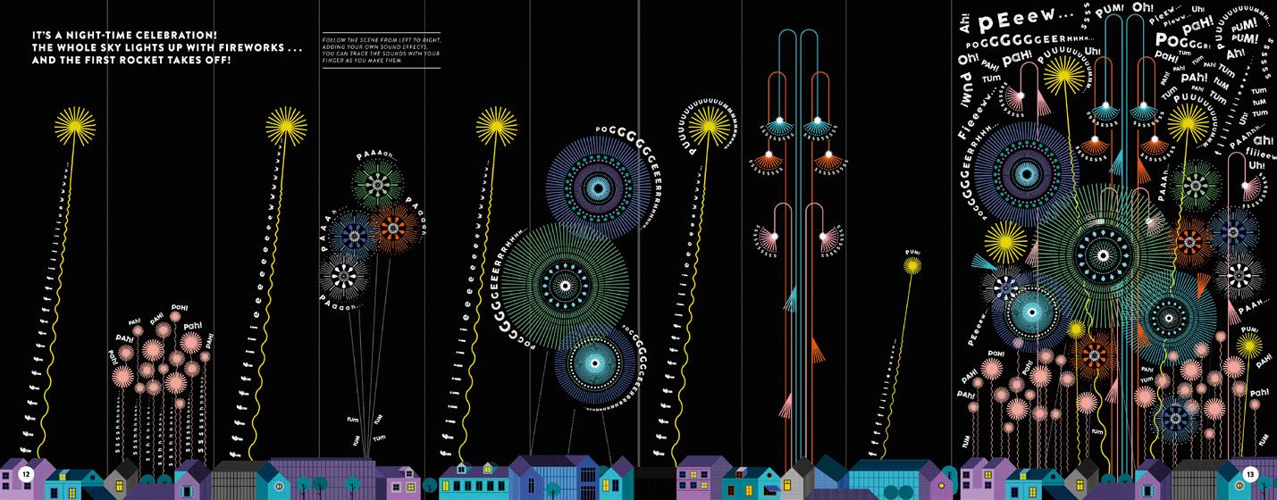 Explore this stylish book and create your own sounds! From raindrops to fireworks, each scene invites readers to add their own sound effects, offering children a joyfully interactive reading experience.