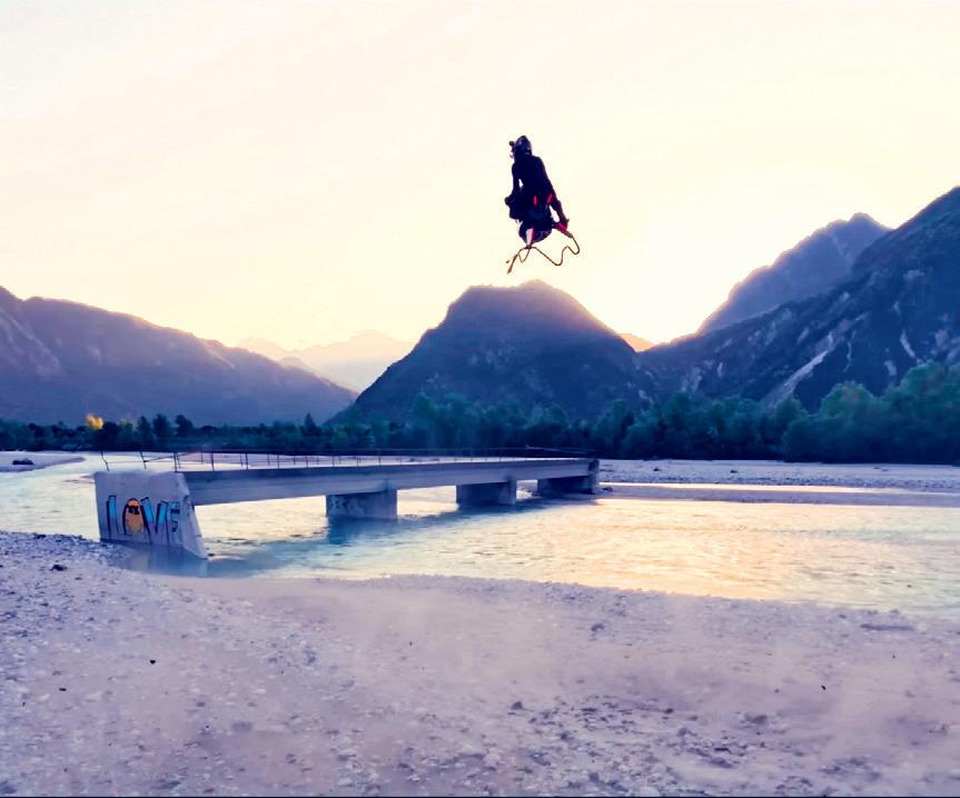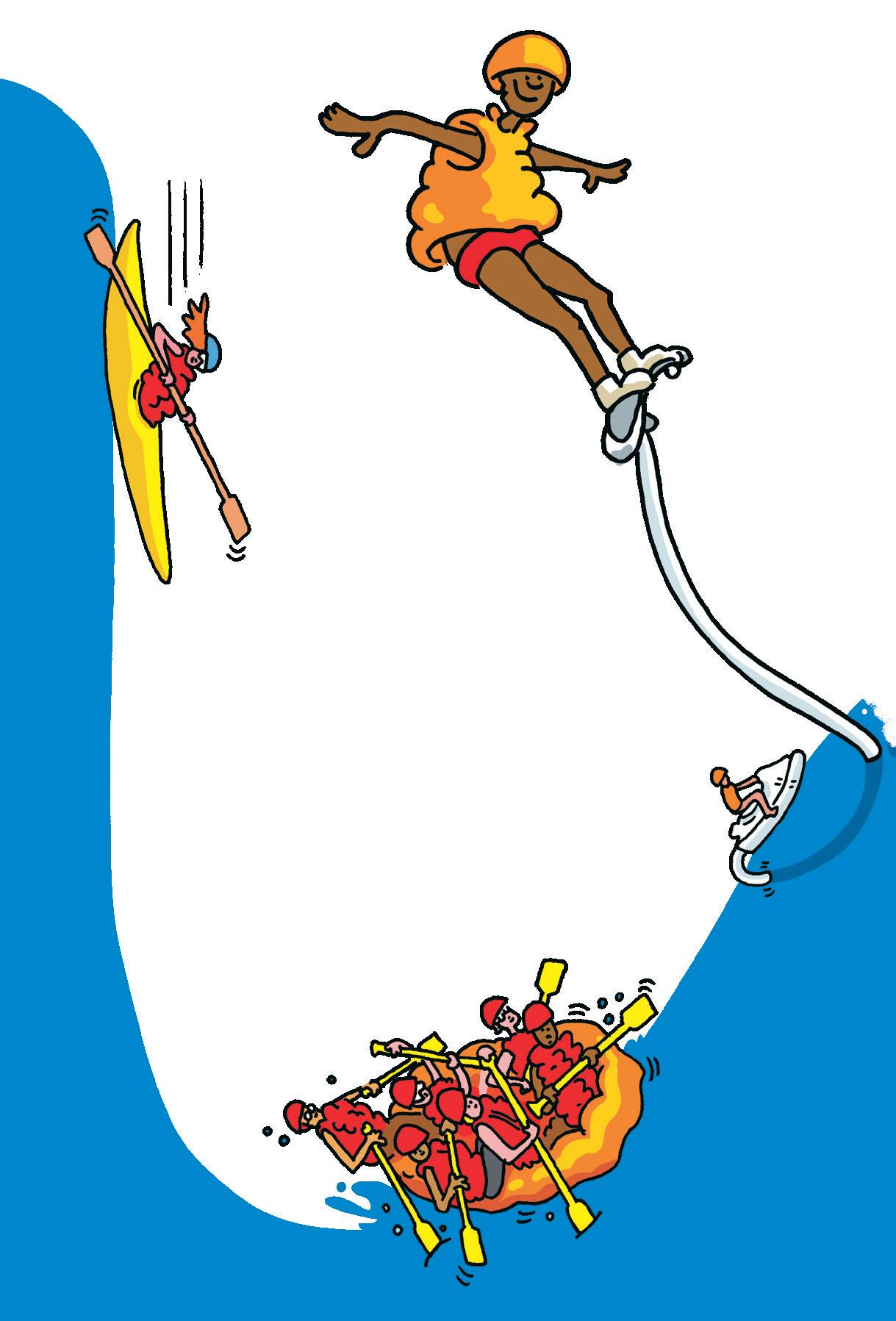 During flyboarding, riders are propelled 14 metres into the air on jets of water