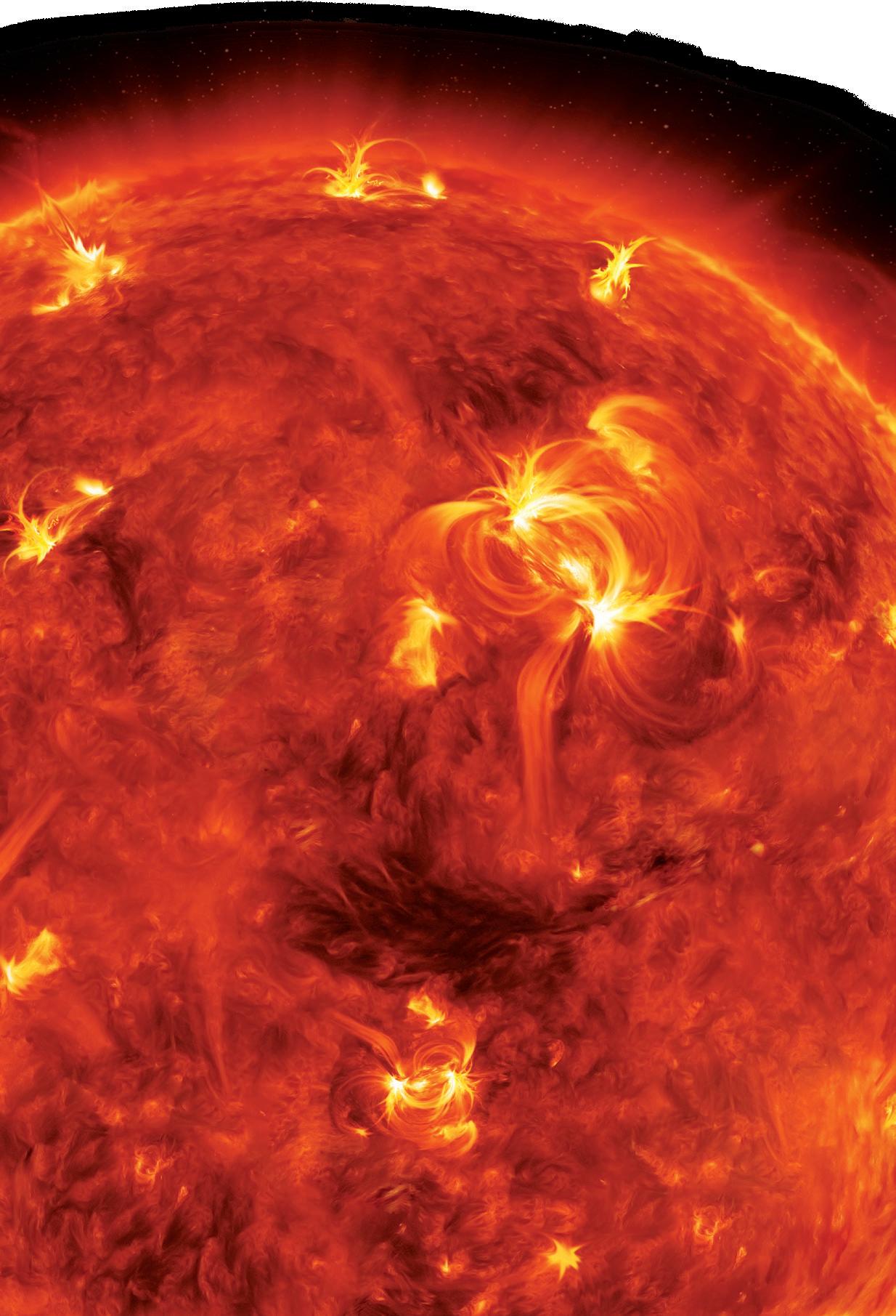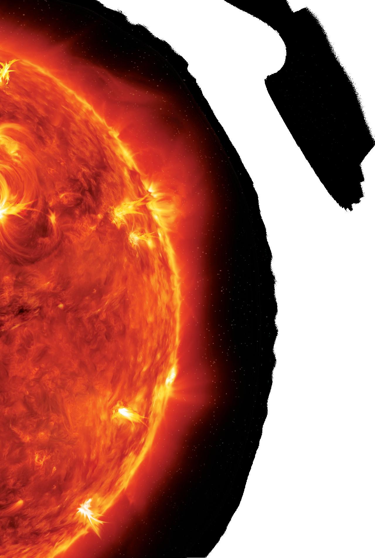 Finally, the Sun is surrounded by a layer of gases, and the outermost layer of the Sun is called the corona. Here, the temperatures shoot upwards again! In fact, it’s 300 times hotter here than at the surface – a fact that scientists are still puzzled by.
