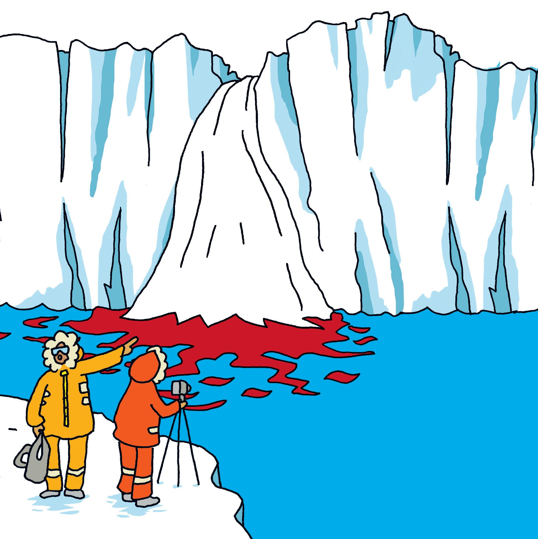 Blood Falls is a red waterfall that runs off an Antarctic glacier. It gets its blood-red colour from iron in the water