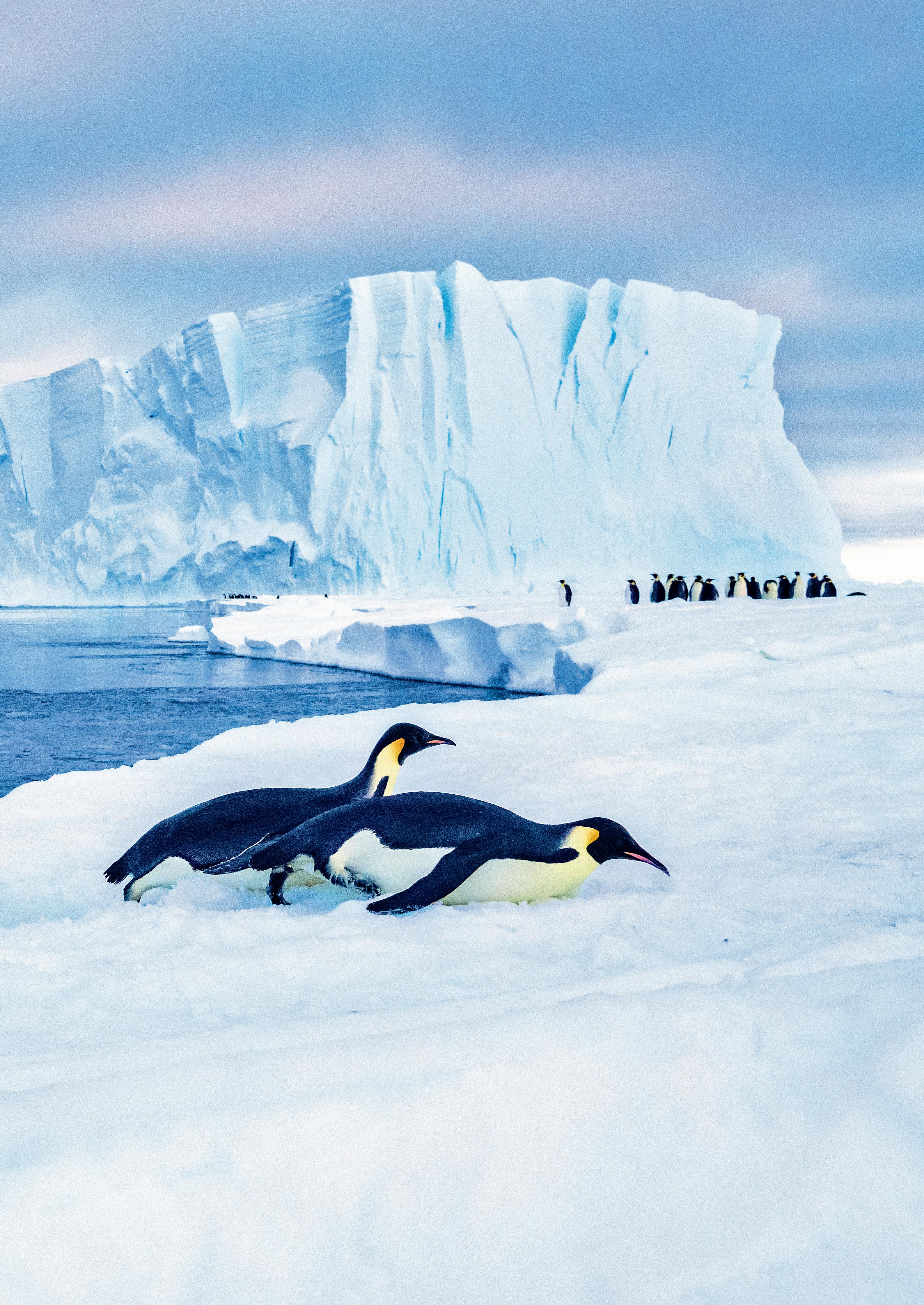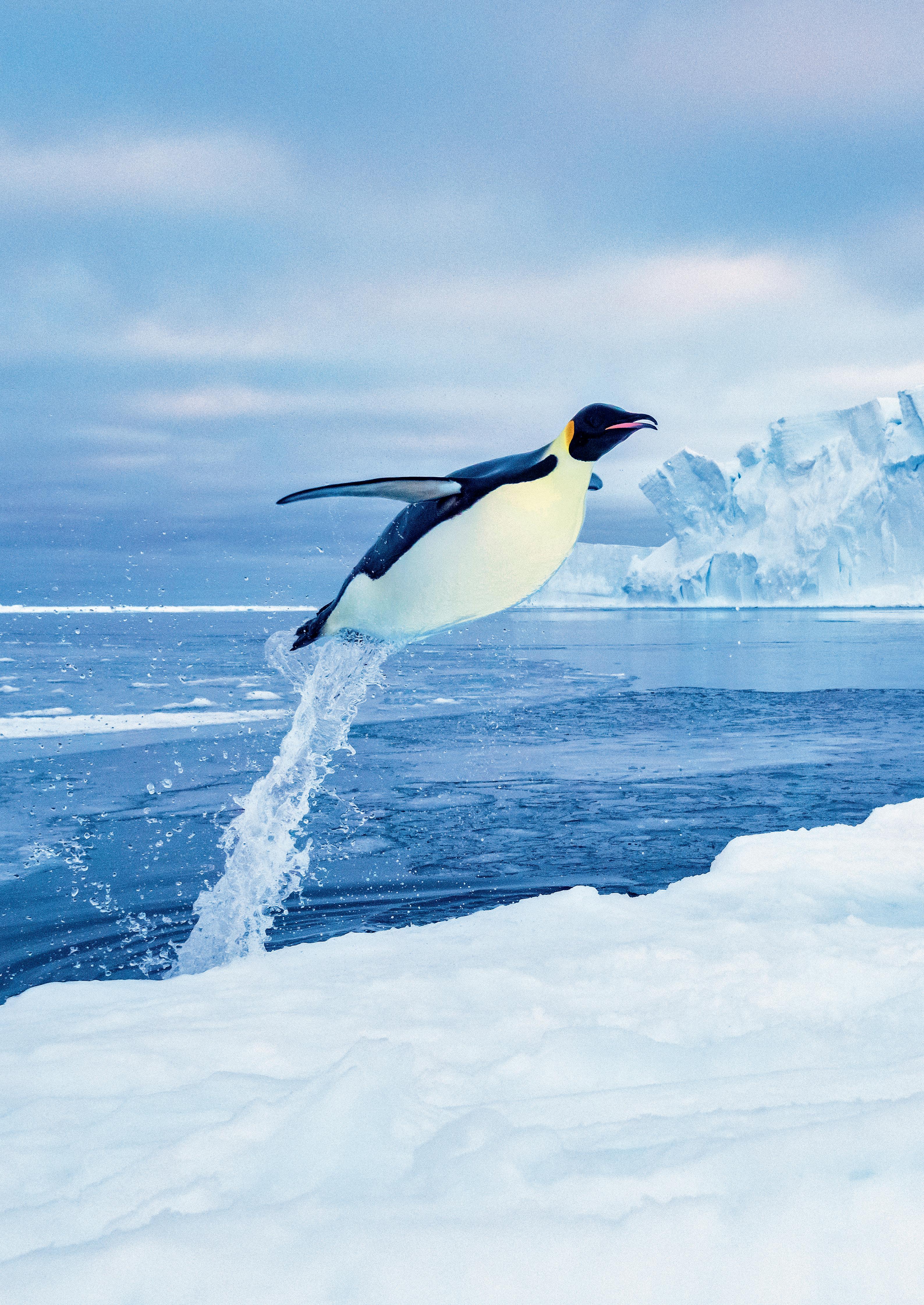 This leaping penguin in Atka Bay, Antarctica has a distinctive trail of water coming from behind its tail. This means it has released bubbles of air from its feathers in order to accelerate its leap. Now that’s what we call penguin power!