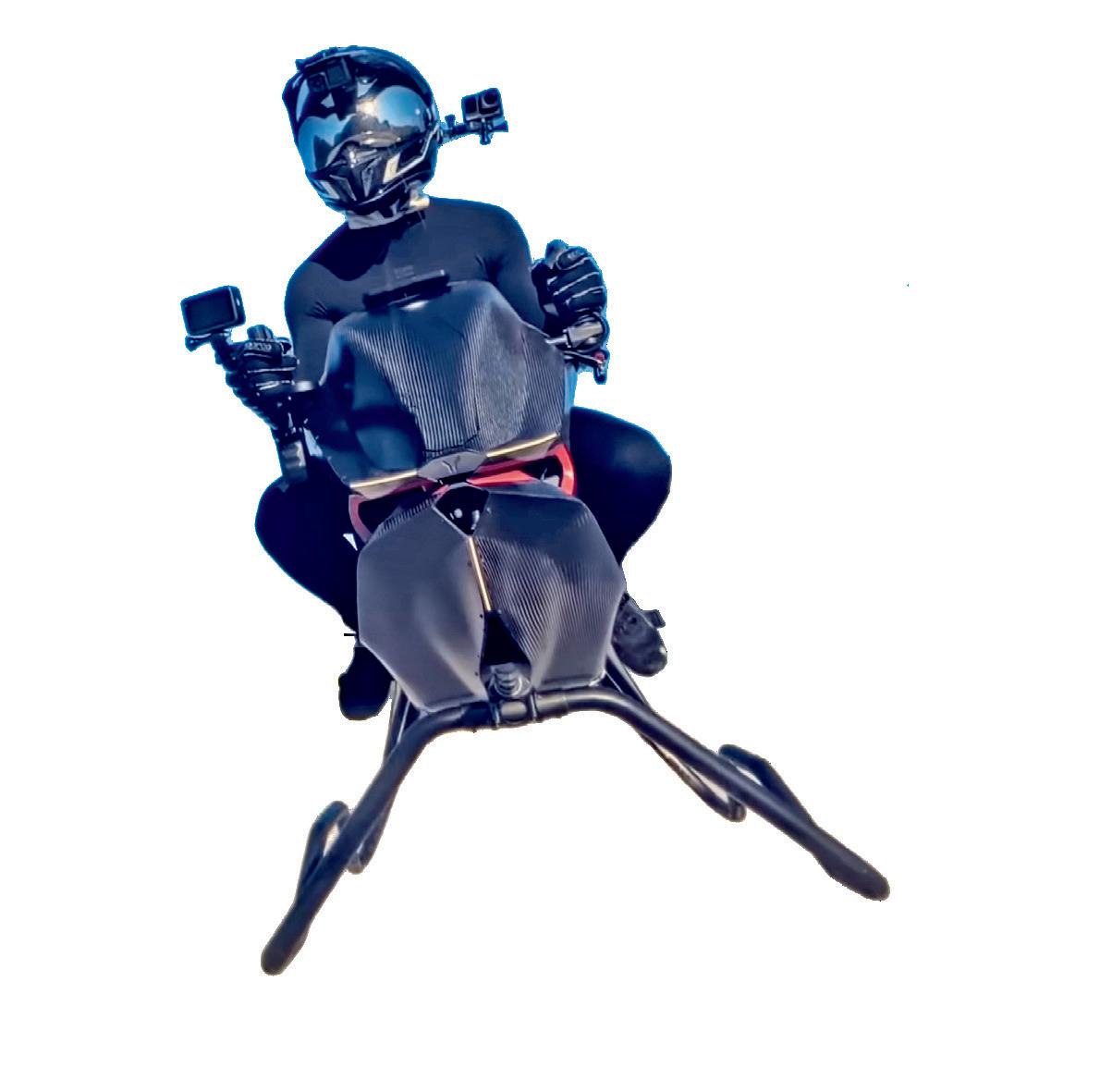 hour! Unlike helicopters and drones, which rely on spinning propellers, the Airbike uses jets of gas to create a powerful thrust. Built from carbon fibre, it’s up to seven times lighter than a typical motorbike.