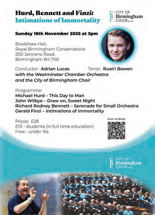 DAME SARAH CONNOLLY (MEZZO SOPRANO) & JOSEPH MIDDLETON (PIANO) IN CONCERT Programme includes works by Brahms, Mahler, Debussy, Errollyn Wallen & Weill, Wed 26 Nov, Elgar Concert Hall, The Bramall, University of B’ham CBSO: AN EVENING WITH RUSHIL RANJAN Featuring Nitin Sawhney CBE (composer/piano), Melvin Tay (conductor), Abi Sampa (vocalist), Aakash Odedra (dancer), Praveen Prathapan (Bansuri), Janan Sathiedran (tabla) & the City of Birmingham Symphony Orchestra. Programme includes works by A.R Rahman, John Williams, Mascagni, Mychael Danna, Nitin Sawhney, Sibelius & Rushil Ranjan, Thurs 27 Nov, Symphony Hall, Birmingham BINCHOIS CONSORT Featuring Andrew Kirkman (director) & His Majesty’s Sagbutts and Cornetts, Fri 28 Nov, Elgar Concert Hall, The Bramall, University of Birmingham SUMMERLEAZE QUARTET IN CONCERT Fri 28 Nov, St Philip’s Cathedral, Birmingham