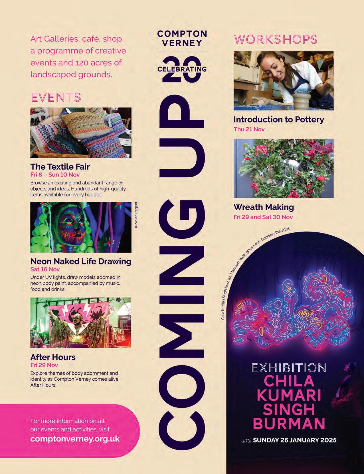 features walkabout drag performers, workshops exploring symbols, portraits and identity, and DJ Moon Odyssey performing ‘an eclectic mix of smooth sounds’ in the café. Further information is available by visiting comptonverney.org.uk