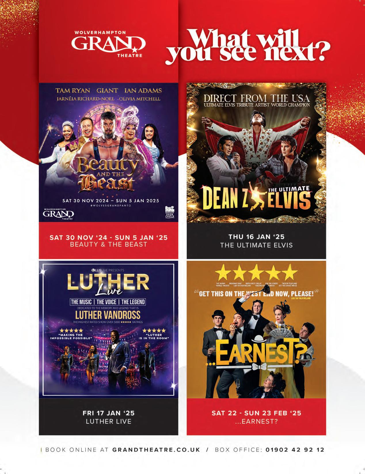 GHOST THE MUSICAL Touring production based on one of cinema’s biggest all-time hits. Casting includes Rebekah Lowings as Molly Jenson, Jacqui Dubois as Oda Mae Brown, Josh St. Clair as Sam and James Mateo-Salt as Carl Bruner. Les Dennis also stars, Tues 26 - Sat 30 Nov, Malvern Theatres THE WIZARD OF OZ Journey to the Emerald City with Birmingham Ormiston Academy’s festive show, Tues 26 Nov - Tues 31 Dec, The Old Rep, Birmingham
