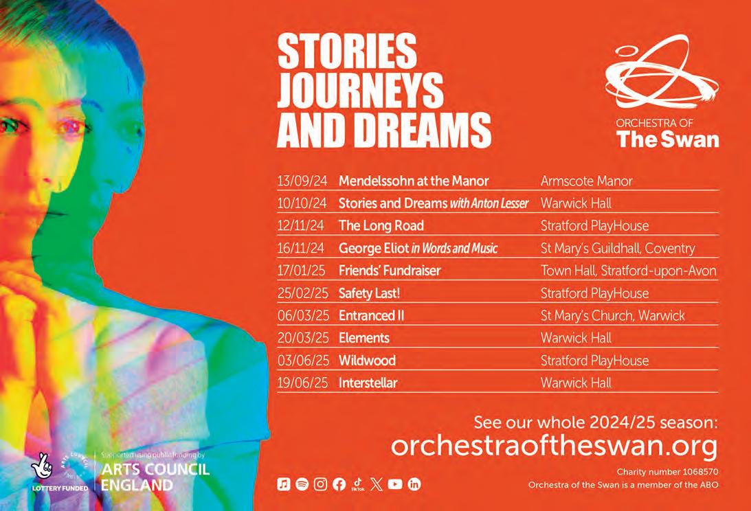 Stratford-upon-Avon’s Orchestra of the Swan kickstarts its 2024/25 season this month. Taking the theme of Stories, Journeys And Dreams, the programme of concerts celebrates the orchestra’s commitment to storytelling and highlights women in music. One of the season’s standout shows is George Eliot In Words And Music, featuring RSC favourite Harriet Walter and celebrating