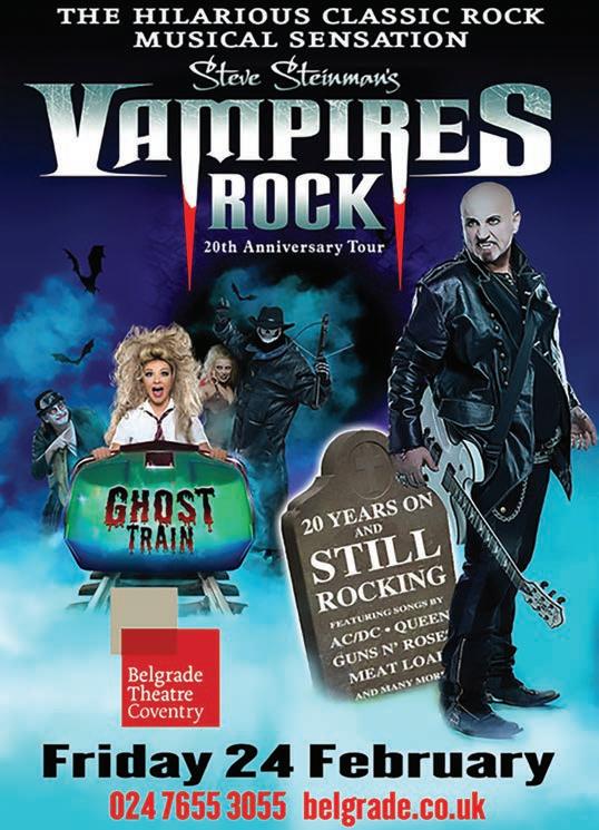 VAMPIRE’S ROCK Classic rock musical starring Steve Steinman and a cast of singers, dancers and musicians, Fri 27 Jan, Theatre Severn, Shrewsbury CINDERELLA: THE ADULT PANTO Market Theatre Company present an evening of ‘corny jokes, raunchy plots and blatant sexual innuendo using minimum set props and costumes’, Sat 28 Jan, Crewe Lyceum Theatre PETER PAN Amateur version presented by The Arts Centre Telford, Sat 28 Sun 29 Jan, Telford Theatre TWINKLE Philip Meeks’ revenger’s comedy, Sun 29 Jan, Loft Theatre Company, Leamington Spa LADIES (DOWN UNDER) Amanda Whittington’s fast-paced comedy and sequel to Ladies Day. Journey with the fish-filleting foursome as they experience the trip of a lifetime in the land of Oz, Mon 30 Jan - Sat 4 Feb, Talisman Theatre, Kenilworth THE MOUSETRAP Agatha Christie’s iconic murder-mystery starring Todd Carty (Major Metcalf) and Gwyneth Strong (Mrs Boyle), Mon 30 Jan - Sat 4 Feb, Malvern Theatres