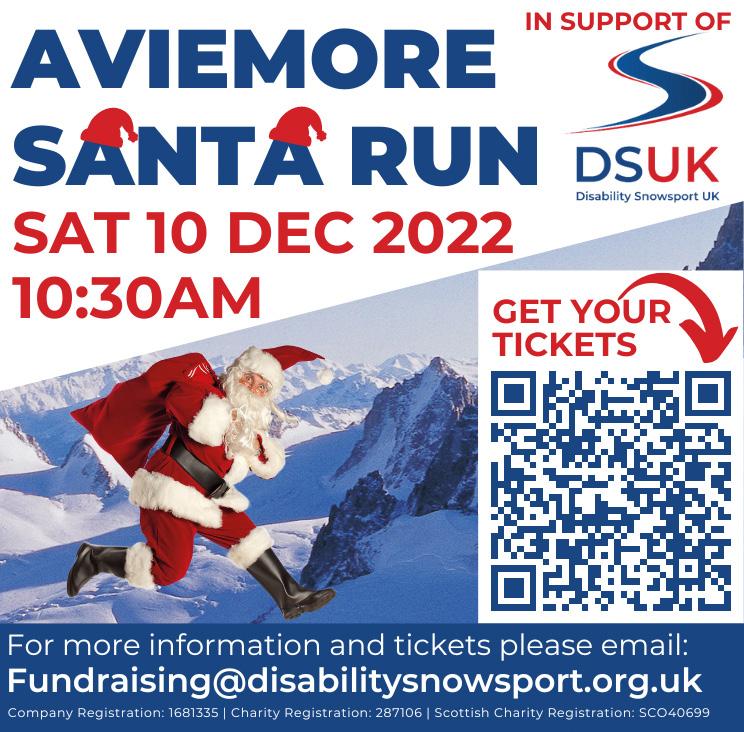 Disability Snowsport UK Aviemore Santa RunMacdonald Resort North Street Car Park. 10.30am1.30pm. T: 01479 788770. www.disabilitysnowsport. org.uk/events/aviemore-santa-run-2022