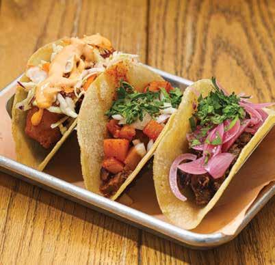 Beef tongue in a taco makes sense. The meat has the full beef flavor, but the texture is soft, unctuous—an almost melt-in-yourmouth feel. Within the fold of a soft corn tortilla, it felt and tasted delicious. The complementary ingredients enhanced the taco without overpowering the meaty taste. A fine example of the tacos that Lime & Salt puts together.