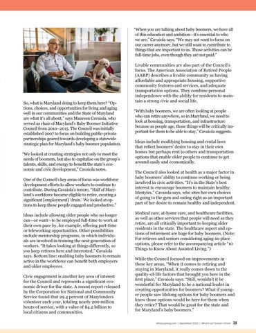 There’s much more to read, learn about, and enjoy in this month’s issue. Our “Towne Athlete” profile showcases a real student-athlete making a difference on the field and in the community. Likewise, we applaud a local volunteer in our “Towne Salute” col umn. We also examine the impact the Baby Boomer generation is having on post-retirement endeav ors such as philanthropy, social activities, and the economy in Part II of the “Chesapeake Retirement Guide.” Of course, the number of events from West ern Shore to Eastern picks up in the Summer and seems to peak in the Fall. September is chock full of them, and “Out on the Towne” highlights many excellent event recom mendations. Beyond all of this, I’m willing to bet you’ll pick up a thing or two along the way as you cover the magazine from first page to last. Thank you for reading!