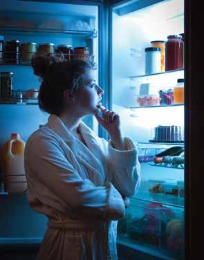 IF YOU’RE HUNGRY LATE AT NIGHT, CONSIDER WHETHER YOU NEED TO BE EATING MORE DURING THE DAY. WHEN HUNGER DOES STRIKE AT BEDTIME, AIM FOR A SMALL PORTION OF NUTRITIONALLY BALANCED FOOD COMBINATIONS. THESE FOUR SNACKS ARE GREAT OPTIONS: