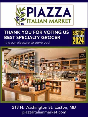 iazza Italian Market is a thriving community hub in the heart of Easton. Visit during lunchtime on any given day, and you’ll see, firsthand, the specialty grocer/eatery buzzing with activity. I took a drive into town on a sunny Monday to visit Piazza, grab a bite for lunch, and take home a few options for dinner. I was greeted by happy staff and happier customers that were either enjoying their lunch in the bright sit-down dining area or perusing imported foods from the market side. The energy was positive. Walking through the main doorway and into the market, it’s hard to resist all the goodies within—select wines, pastas, sauces, vinegars, and oils for sale; the delicatessen of fine cheeses and cured meats, cold cases of prepared Italian entrees, antipasti, desserts; plus, collections of cottage industry wares and local books. I worked my way past all of this toward the rear counter and large, chalkboard menus to order a couple panini.