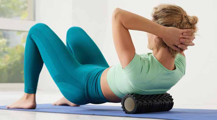 ◆ Sit with a foam roller under your hamstrings, rolling from knee to glute.