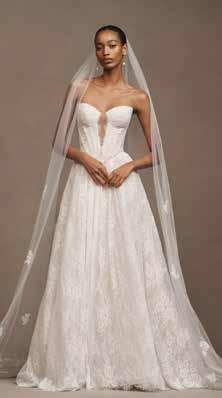 A traditional Victorian feature that’s getting a modern upgrade, Basque waistlines create a dramatic silhouette that accentuates the waist. This V-shaped waistline is complementary to a variety of body shapes and can add a touch of romantic refinement to a wedding day look. Recently seen at celebrity weddings and on the runway, Basque waists are expected to be a dominant style for 2025 weddings.