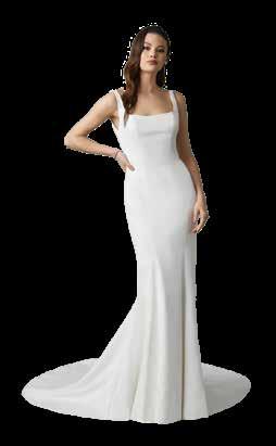 A minimalist Basque waist with a sleek sheath silhouette is perfect for the modern bride.
