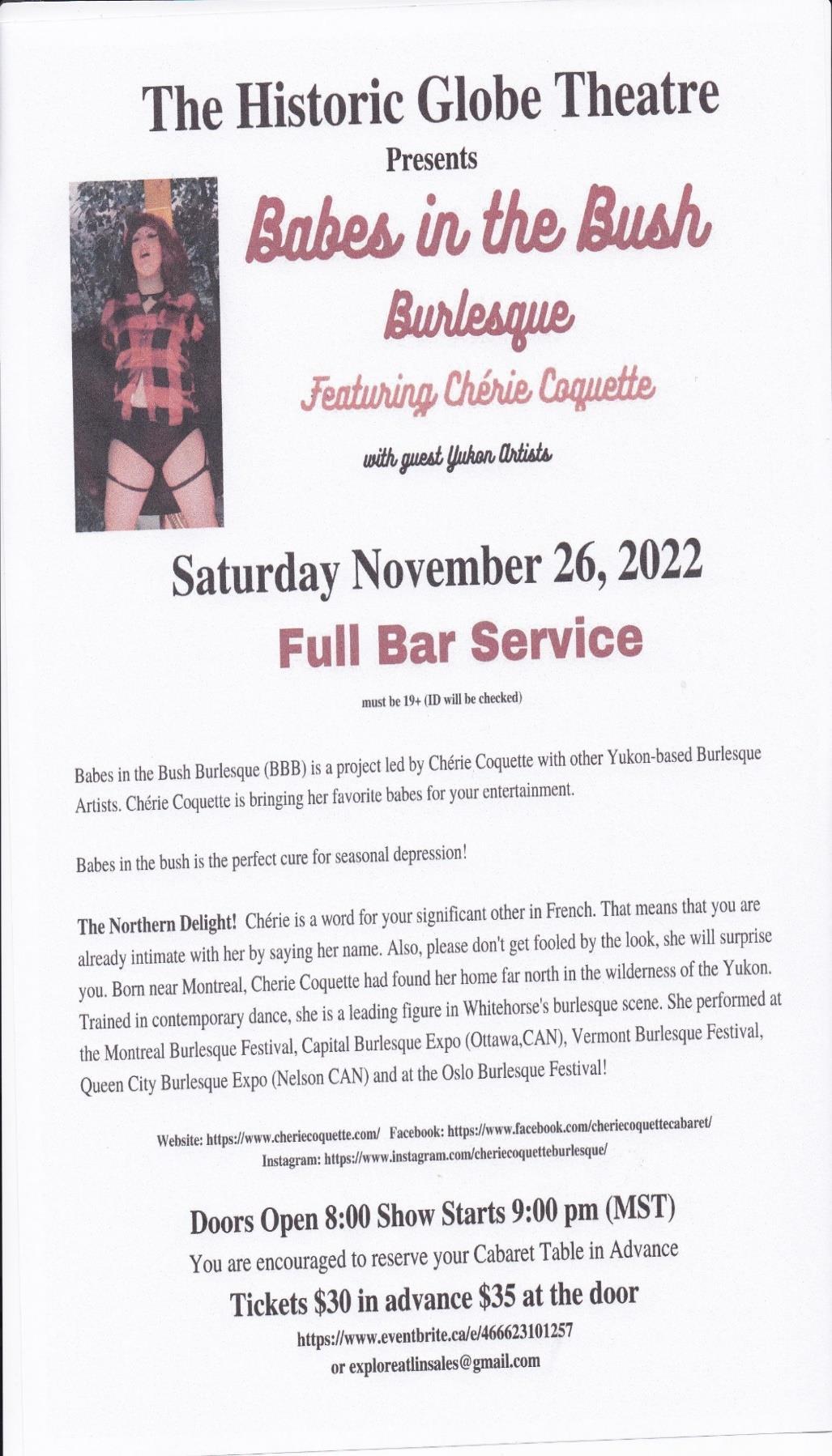 “We should invite a bunch of performers down here one weekend, just for fun. We could stick ‘em in a big wall tent, maybe set up something at the Rec Centre for the locals.”
