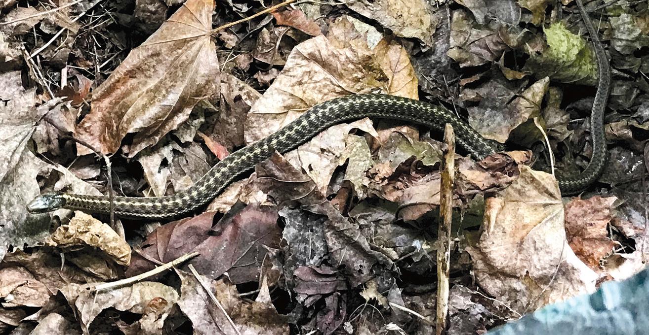 in Newfoundland. They are not known to bite, and if they do, the bite is not poisonous. The garter snake is shy, like most reptilians, and harmless. They are darkcoloured but their unique yellow stripes make them easy to see in foliage or on pavement.