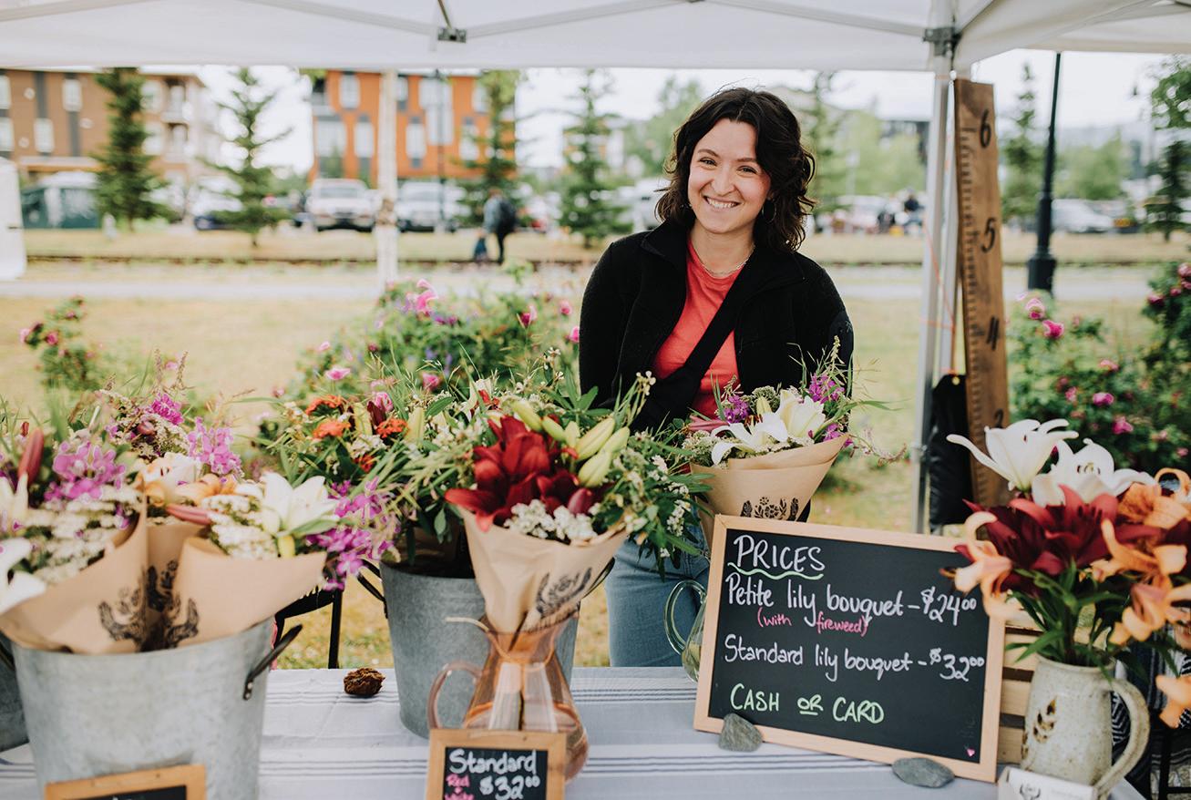 Growing up just outside of Whitehorse, in the Takhini River Valley, gave Brown a foundation of connection with the land as well as with the local community. One of the big reasons why she was willing to even try becoming a flower farmer, in a place where the average growing season is only about 70 days long, was knowing just how supportive Yukoners are of local small businesses. “I figured if Yukoners saw and understood the value of locally-raised meats, locally-grown produce, locallyroasted coffee and locally-brewed beer, they might just be able to see and understand the value of locally-grown flowers,” she said.