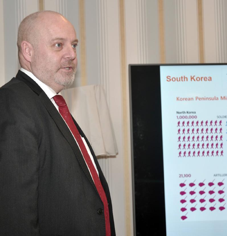 Bild t.v: Danske Mogens Mogensen presenterade det koreanska raketartillerisystemet Chunmoo för årsmötets deltagare.