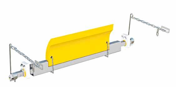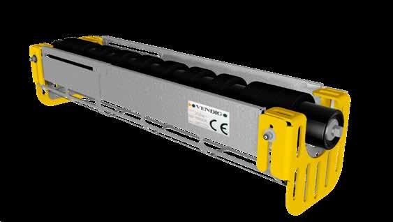 Vendigs unika fjäderhävarm ser till att rätt tryck mot bandet upprätthålls vilket minskar underhållsbehovet och förlänger livslängden för både transportörens band och för skrapan. Hävarmen underlättar service och minskar servicetiden. Förskrapan placeras mot drivtrumman strax under materialflödet.